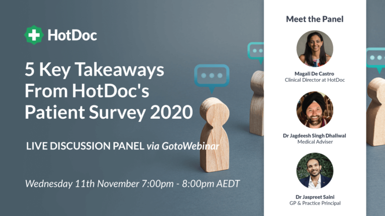 Our panel discusses how Australians’ expectations in general practice have changed after 9 months of COVID with the 5 biggest takeaways from HotDoc’s Patient Survey 2020.