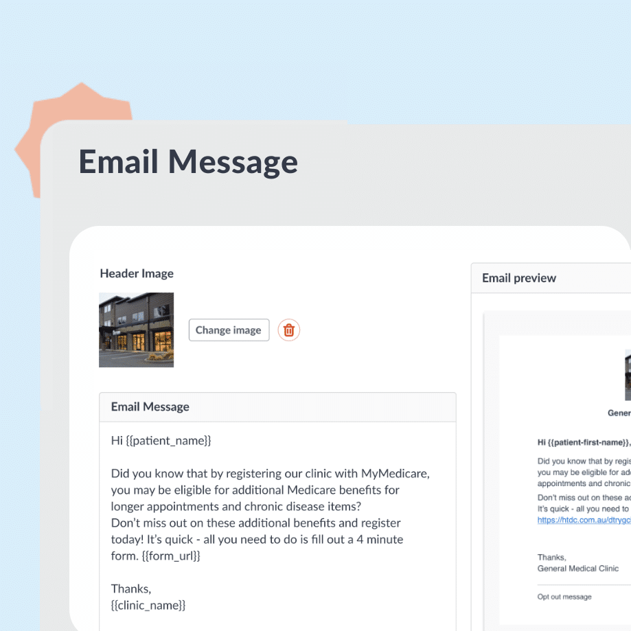 Capture patient consent for bulk billing face-to-face appointments via email and push notifications. Save staff time and safeguard compliance with a seamless process.