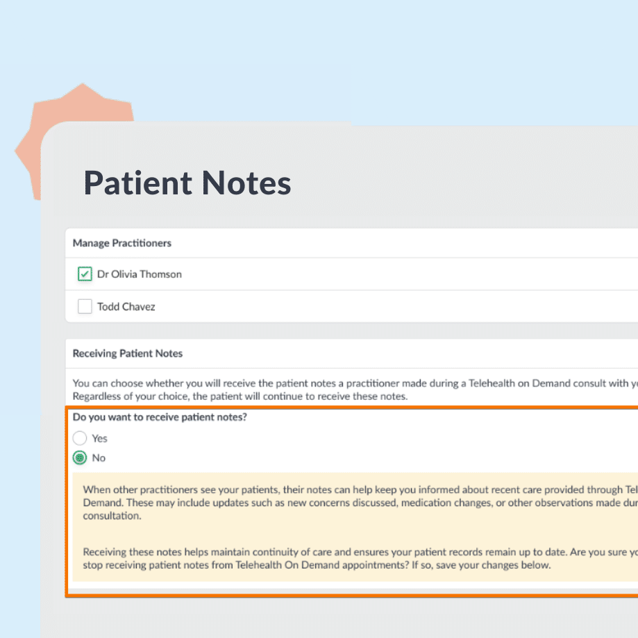 Choose whether you receive Telehealth patient notes